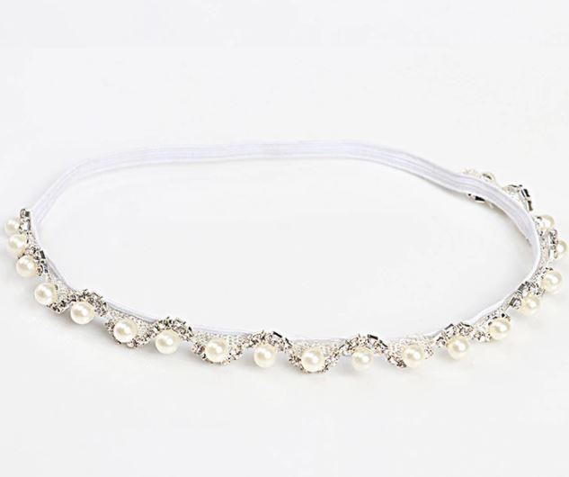 Elegantes, feines Haarband, schmal, mit Perlen und Glitzer, weiss