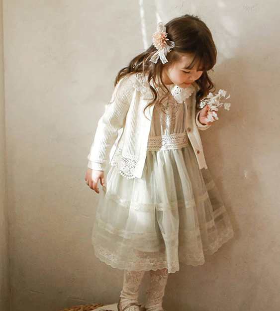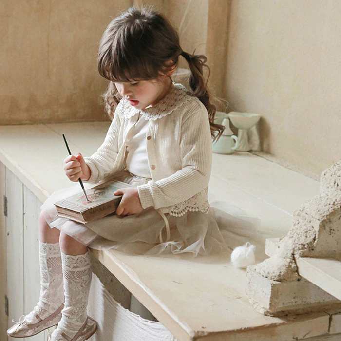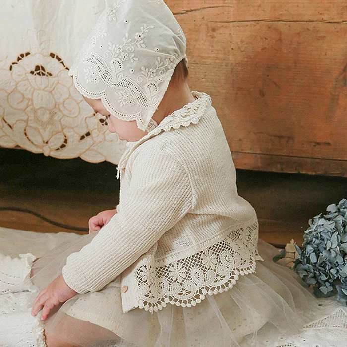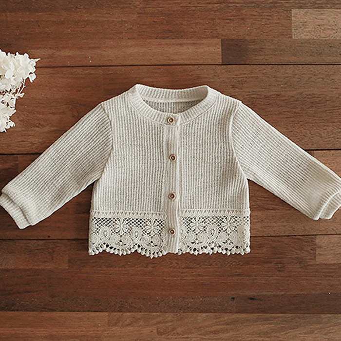 Hübsches beiges Jäckchen für Babys / Mädchen mit schönem Spitzenabschluss unten.
