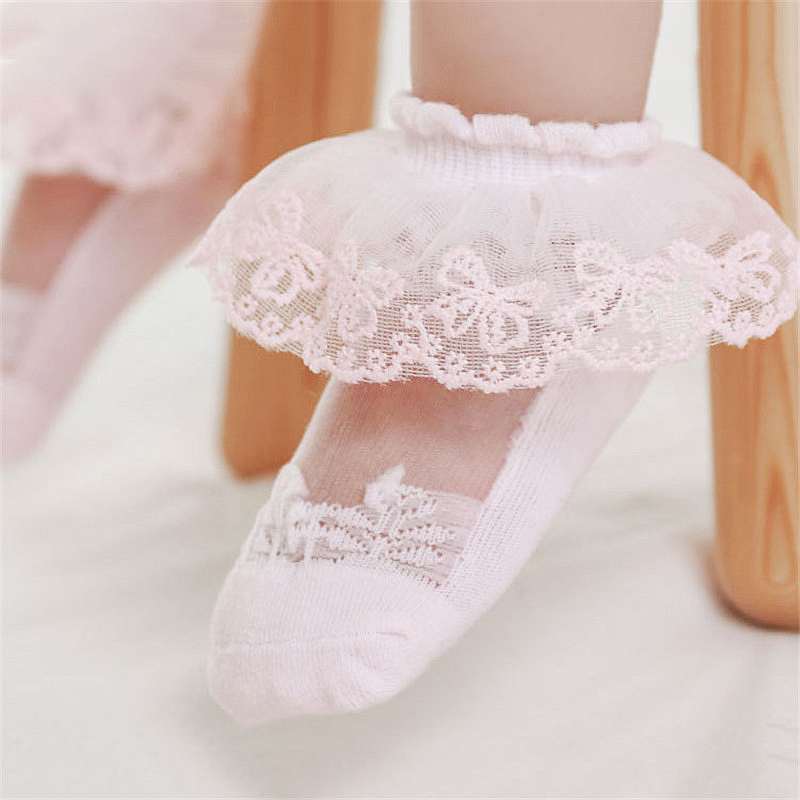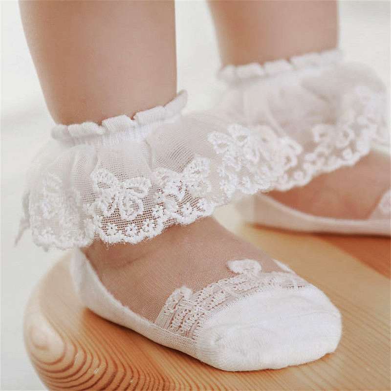 Babysöckchen zart und teilweise transparent - weiss mit Spitzen