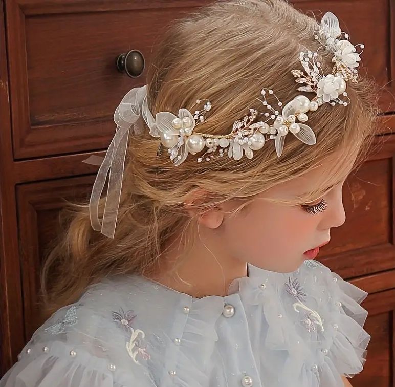 Dieser schöne Haarschmuck ist wunderschön für Blumenmädchen, Kommunion und andere Anlässe.