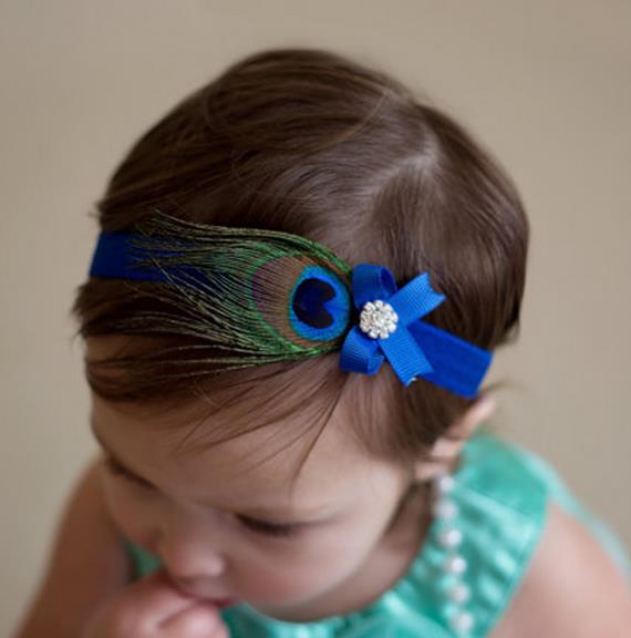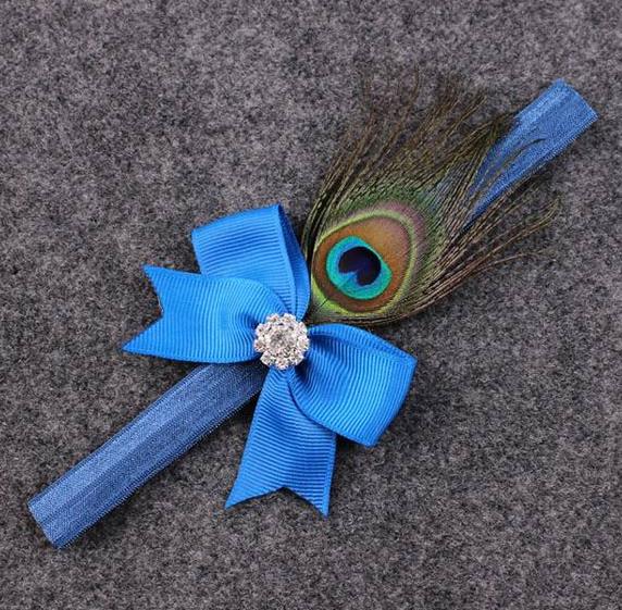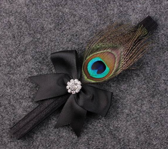 Elegantes Haarband mit Pfauenfeder und Glitzerstein