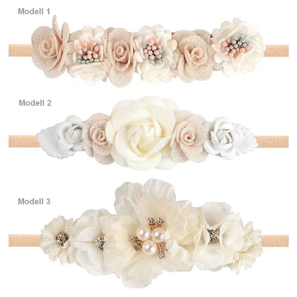 Wunderschöne Blüten-Haarbänder - 3 Modelle zauberhaft dekoriert - mit einem super-elastischen, weichen Band