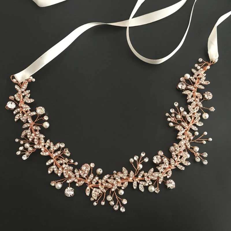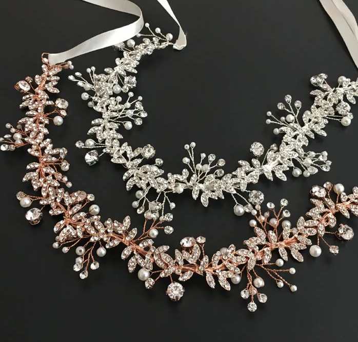 An beiden Enden ist ein Satinband befestigt, damit der Schmuck einfach in die Frisur eingebracht werden kann.