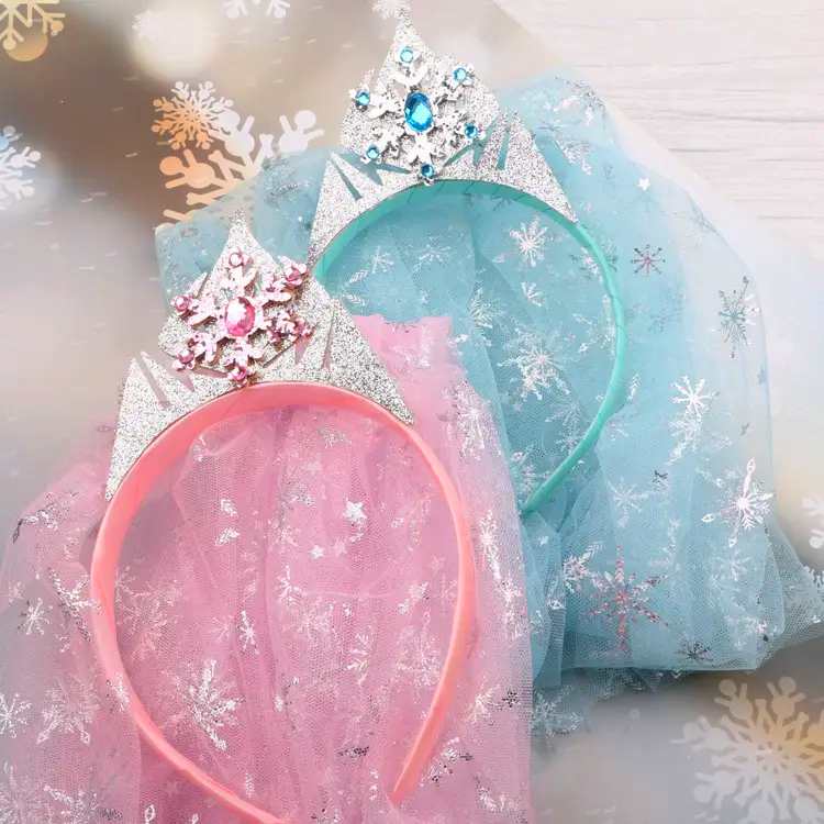 2 Farben: Elsa Haarreif mit Krönchen und Schleier im Eisköniginnen-Look!