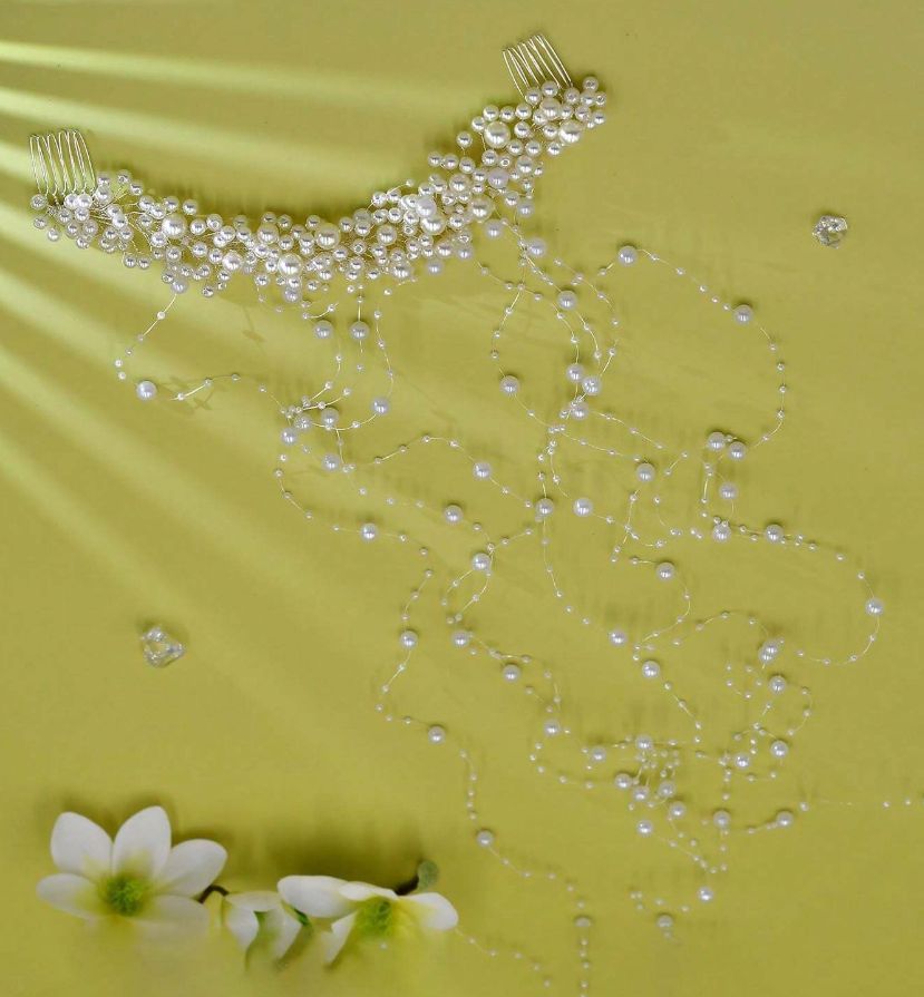 Daran sind acht lange schöne Perlenstränge befestigt. Dieses schöne Accessoire gibt jeder Frisur einen eleganten touch...