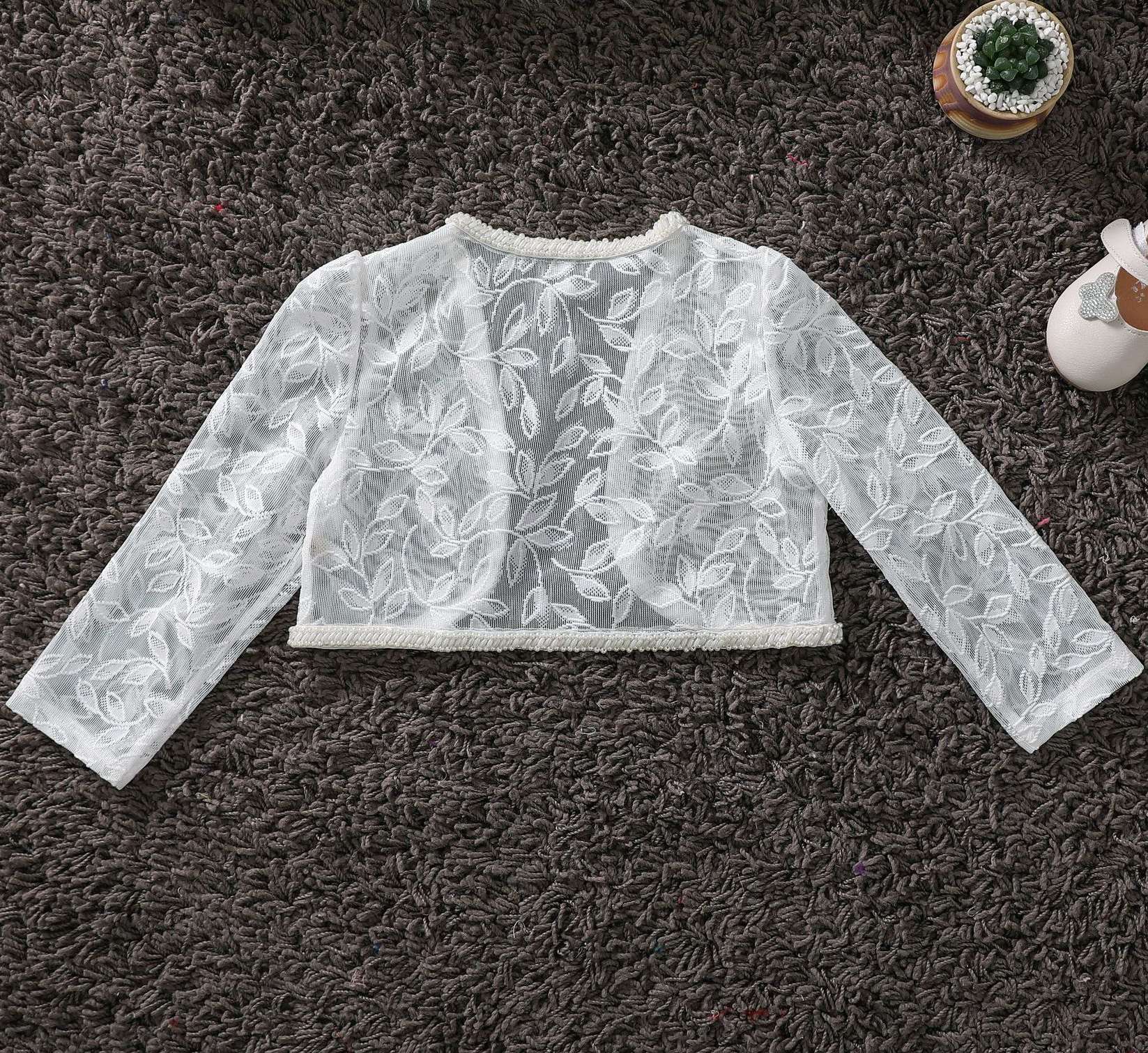 Dieses wunderschöne Jäckchen ist aus weichem, leicht elastischem Spitzenstoff in guter Passform.