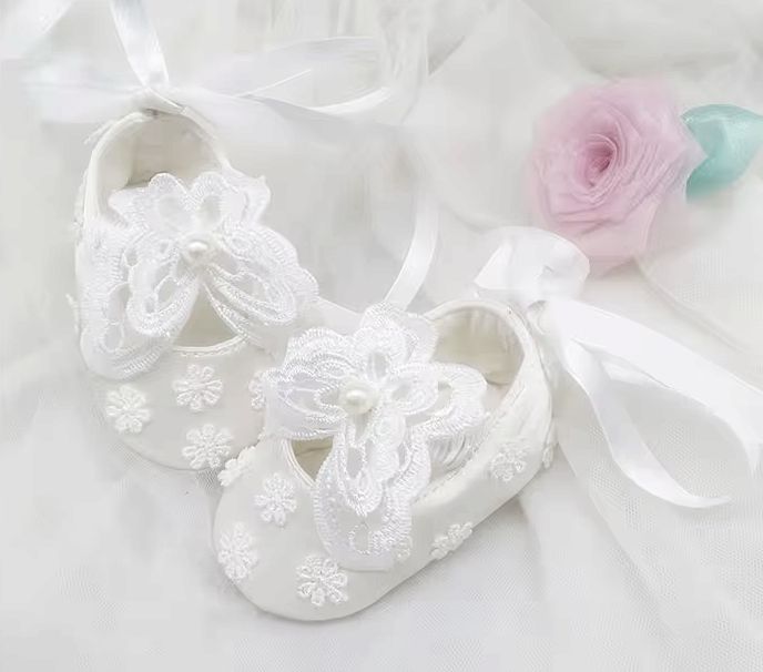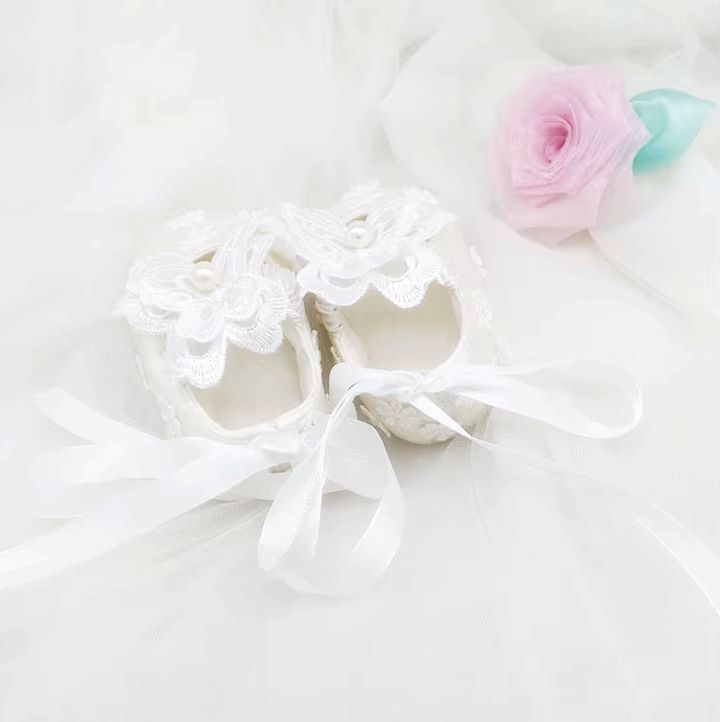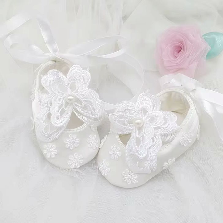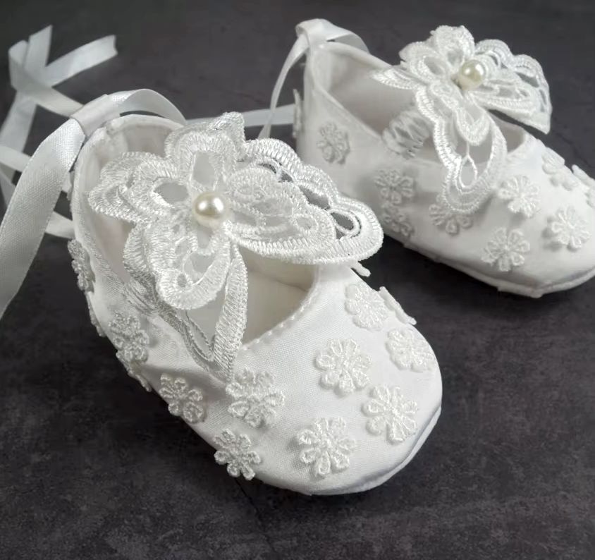 Bezaubernde Taufschuhe mit Spitzendeko und Schmetterlingen