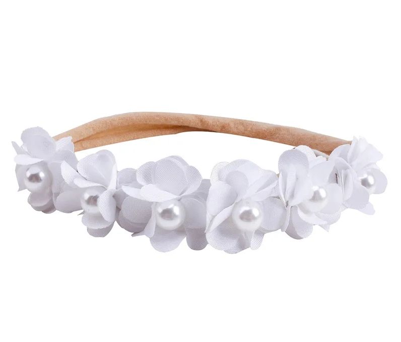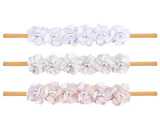 3 Farben: Zauberhafte Blütenhaarbänder mit kleiner Deko-Perle, super-elastisch und weich