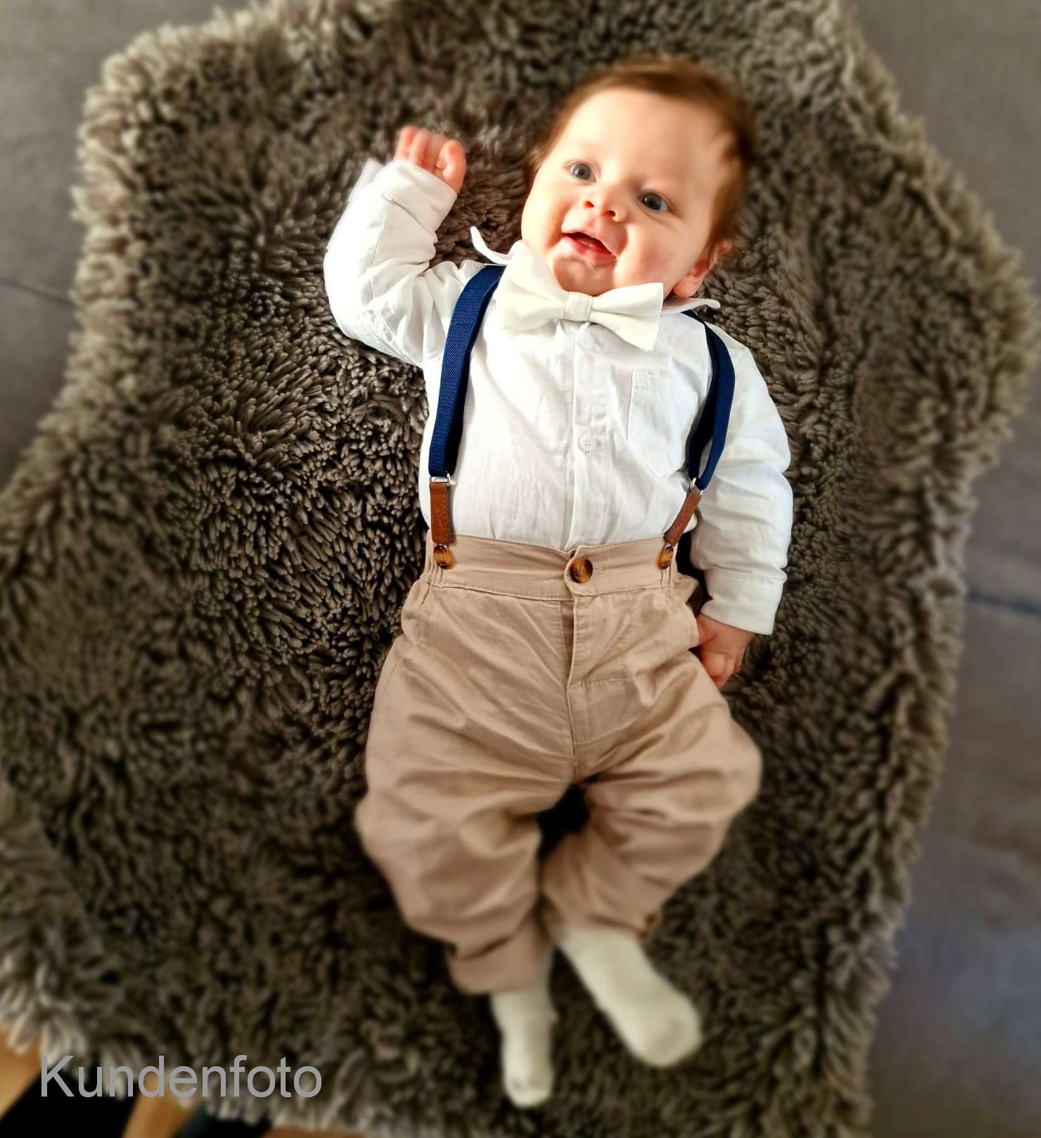 Sie erhalten immer zwei Paar Hosenträger (hell und dunkel) dazu. Diese passen jetzt, aber auch noch weitere Jahre, da sie verstellbar sind.