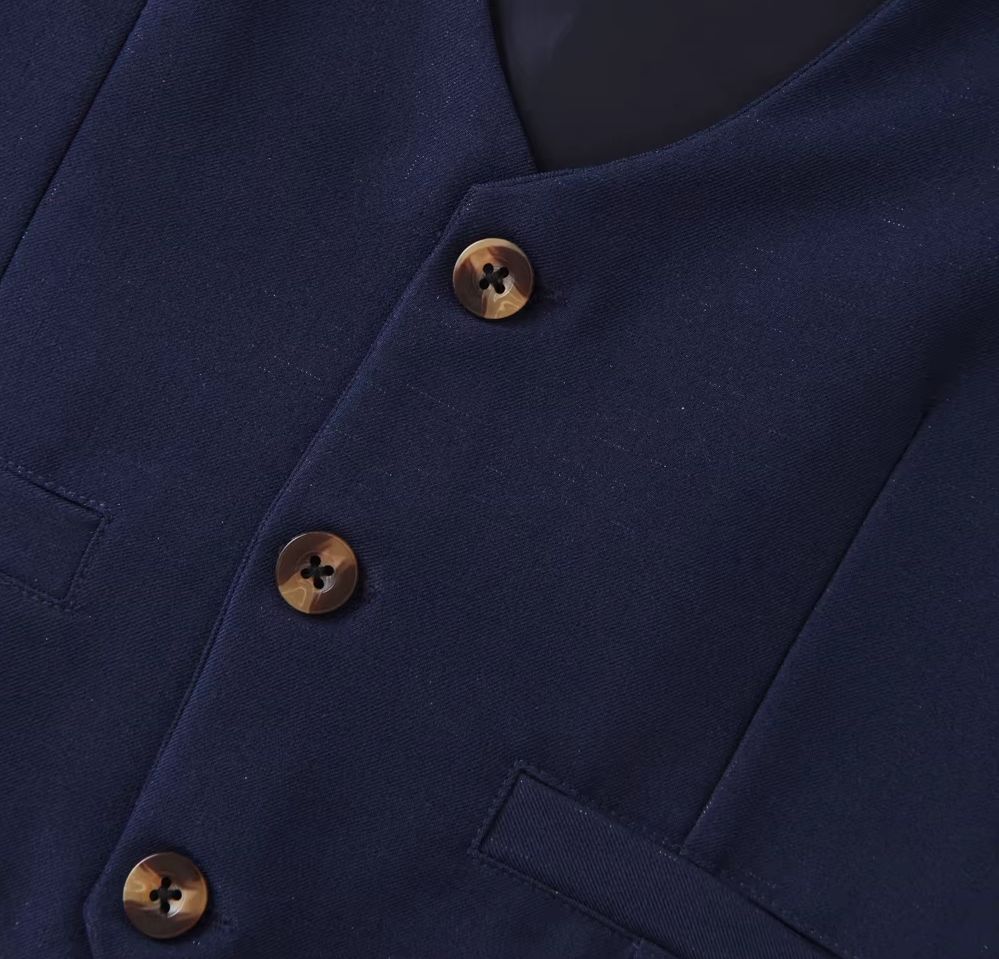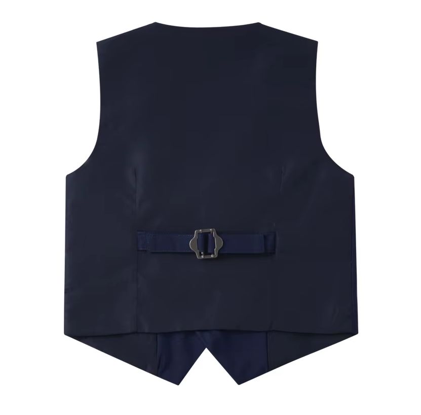 Total chic: Anzug-Set navyblau mit Weste, Hemd, Fliege und Hose, Grösse 80