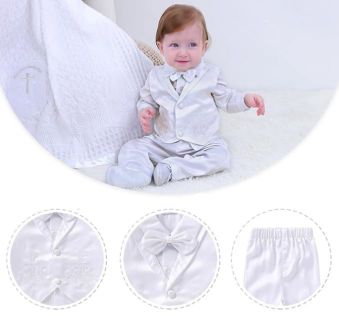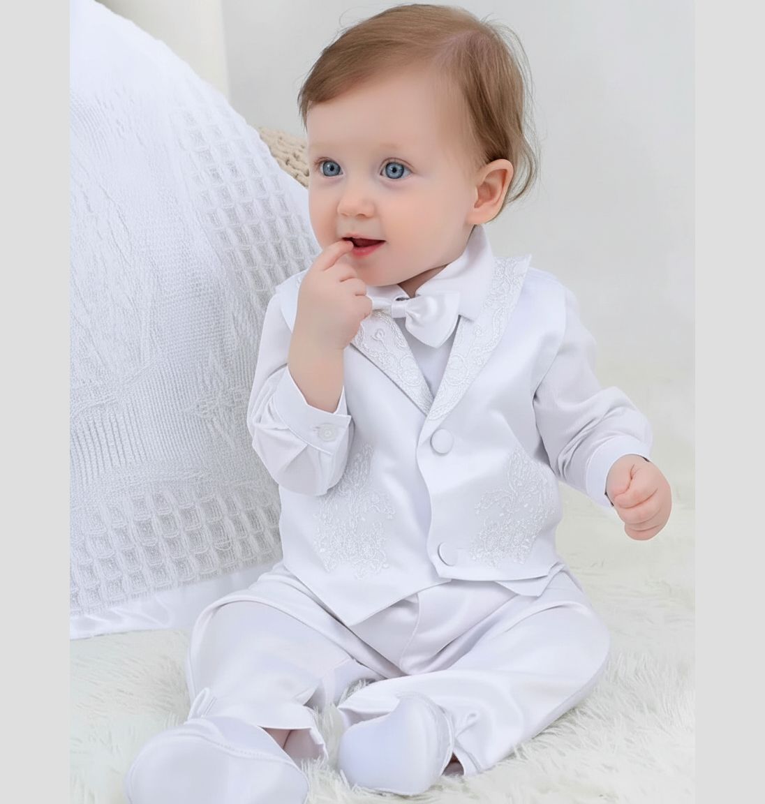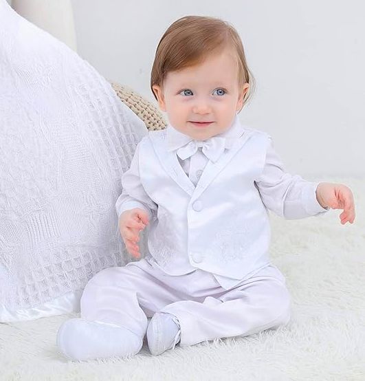 Dieser Taufanzug besticht durch seinen Stil und Eleganz.