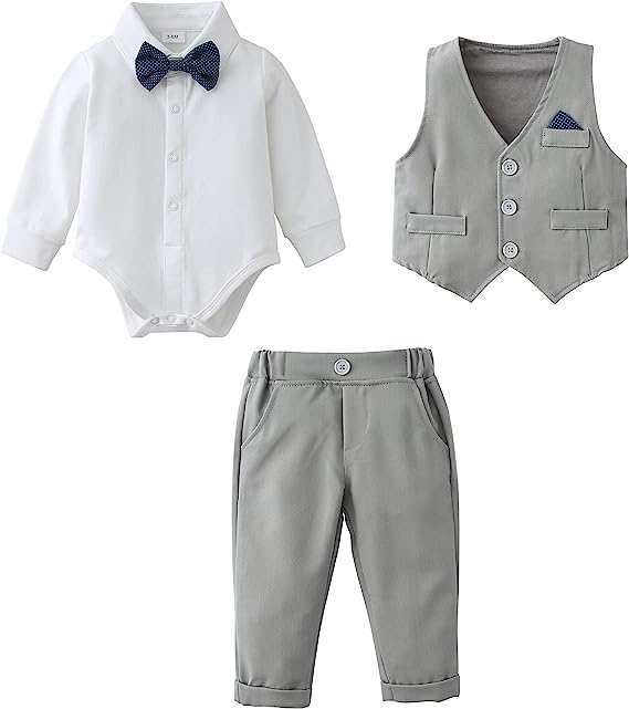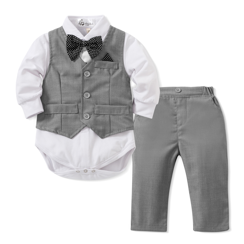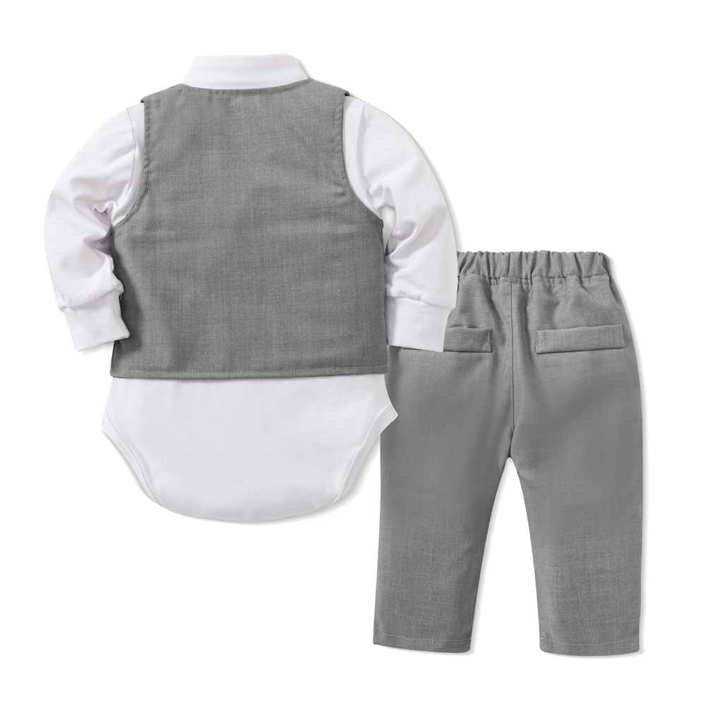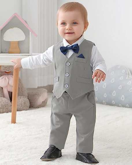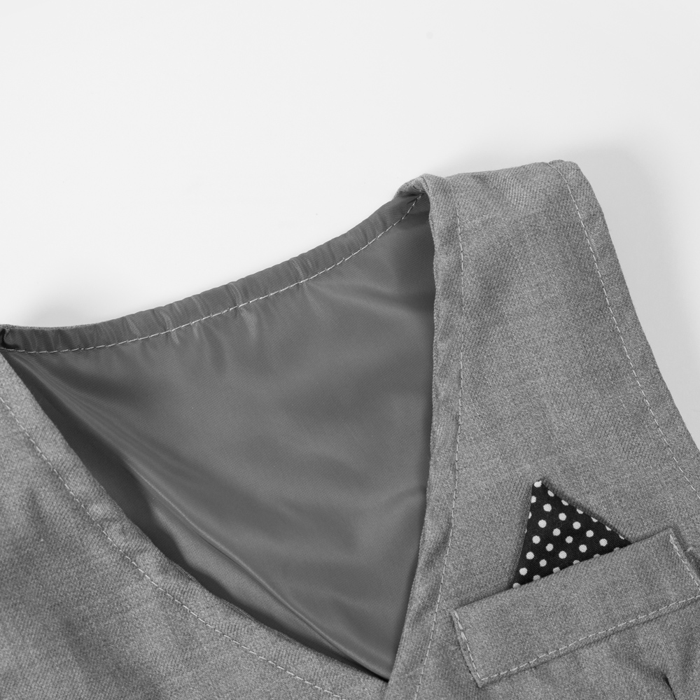 Die separate Weste - mit süssem Einstecktuch - und die langen Hosen sind aus richtigen, leichtem Anzugsstoff, Baumwolle-Viskose Mix.