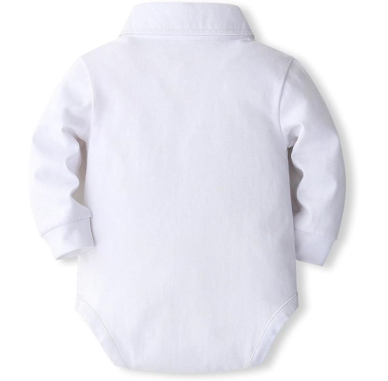 Das Set besteht aus dem weissen Hemd-Body aus Baumwoll-Jersey, mit Fliege und 'Einstecktuch'
