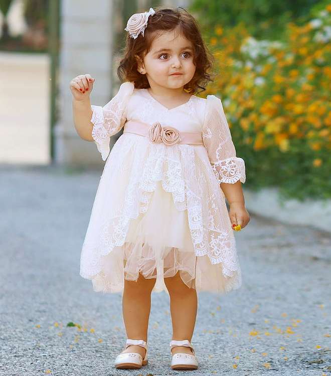 Mädchenkleid bauschig und weich, nostalgische Details und Spitzen.