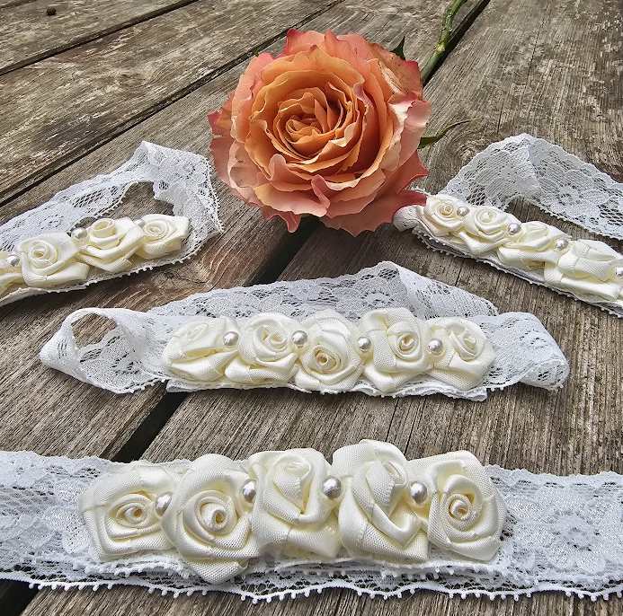 Zauberhaftes weisses Haarband mir kleinen Rosenblüten in elfenbein - Eigenproduktion