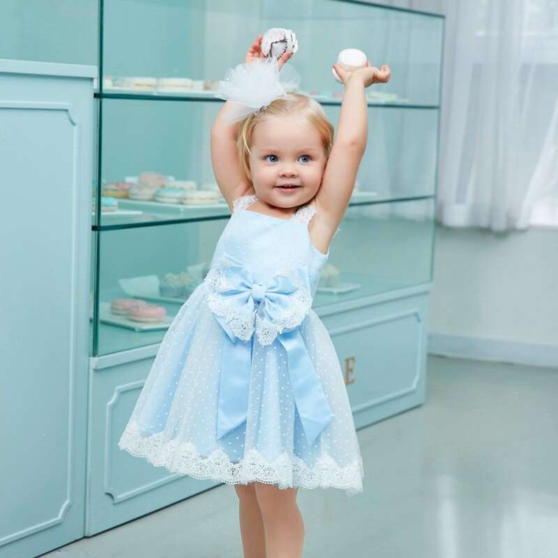 Preishit aus Eigenproduktion: Traumhaftes Kleidchen in Hellblau - mit hübschen weissen Spitzen, solange Vorrat