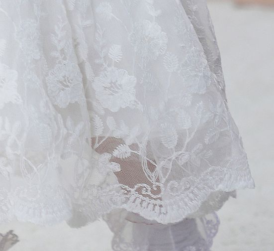 Besonders schön sind die feinen Blüten-Stickereien und der schöne Spitzensaum.