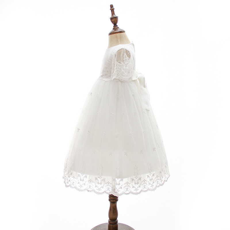 Dieses schöne Taufkleid ist klassisch lang - das heisst, wenn Ihre Prinzessin schon läuft, ist es perfekt für