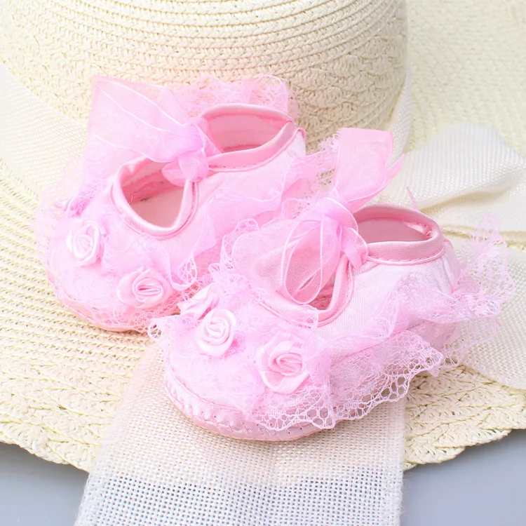 Süss: Babyschuhe mit Blüten und Spitzen - weiss oder rosa
