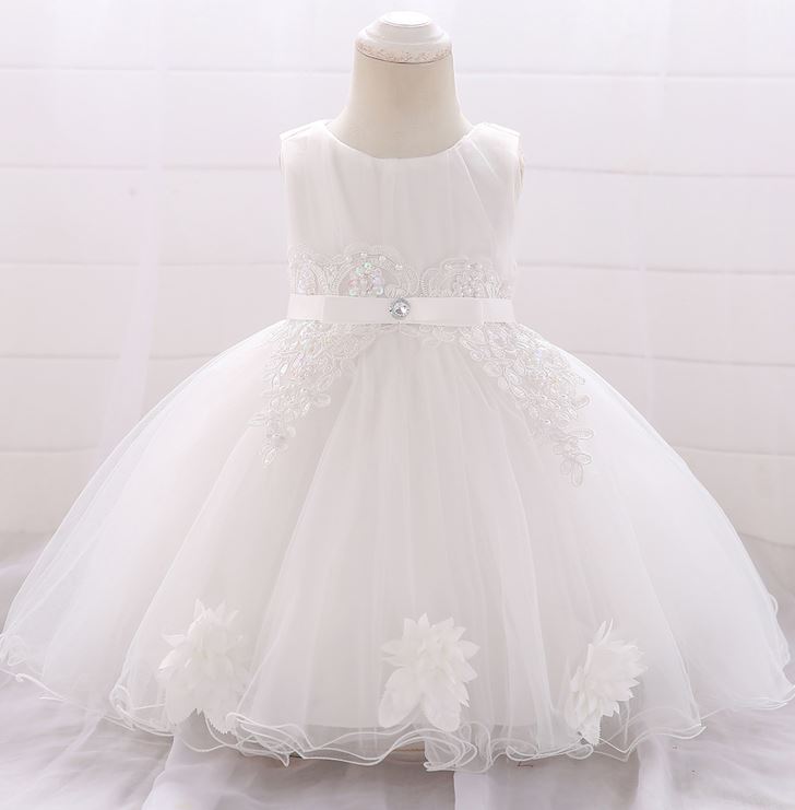 Glamouröses Taufkleid - Ballkleid, mit Spitzen, Strassdeko und Blütensaum. Weiss oder Rosa