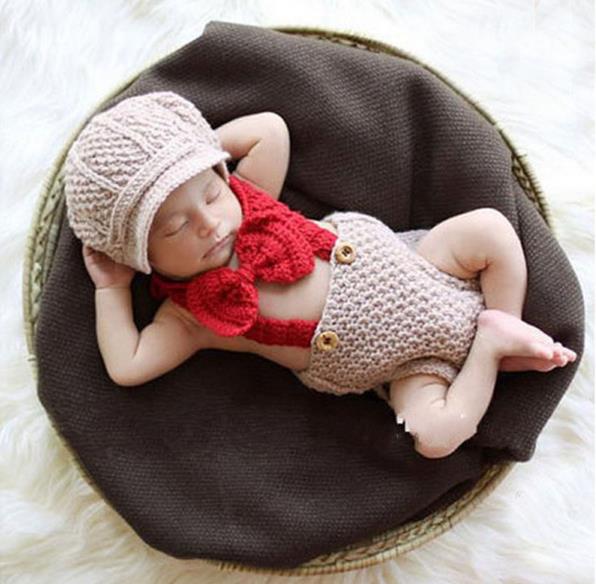Babykostüm für kleine Boys - ganz cool. Aus weicher Baumwolle gehäkelt. Set bestehend aus: Höschen (Windelcover), Hosenträger, Fliege und Mützchen. Passt ab Geburt bis ca. 1 Jahr.