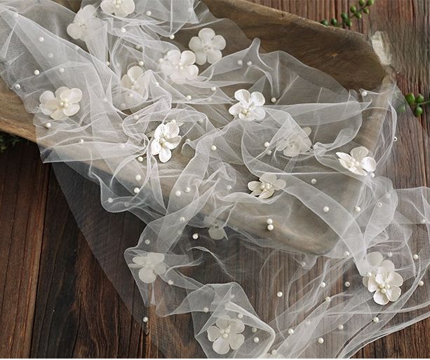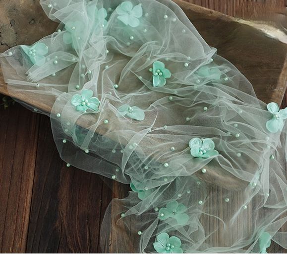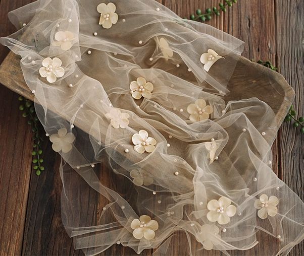 Vanille und Türkis: Bezaubernde feine Chiffontücher mit Blüten und Perlen