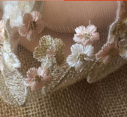 Das Kleidchen besteht aus besticktem, leichtem Tüll, mit wunderschönen Blumensujet.