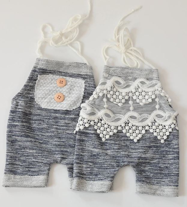 » Babys & Neugeborene » Newborn » Mein erster Jumpsuit - oder Zwillingsset - Latzhösli blaugrau mit offwhite