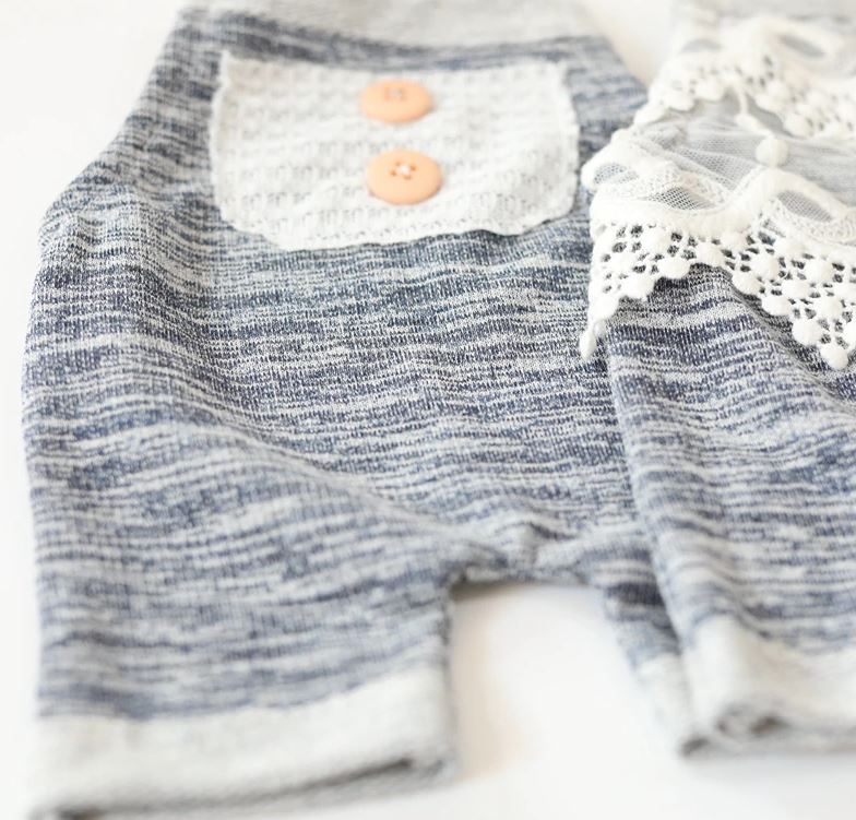 Mein erster Jumpsuit - oder Zwillingsset - Latzhösli blaugrau mit offwhite
