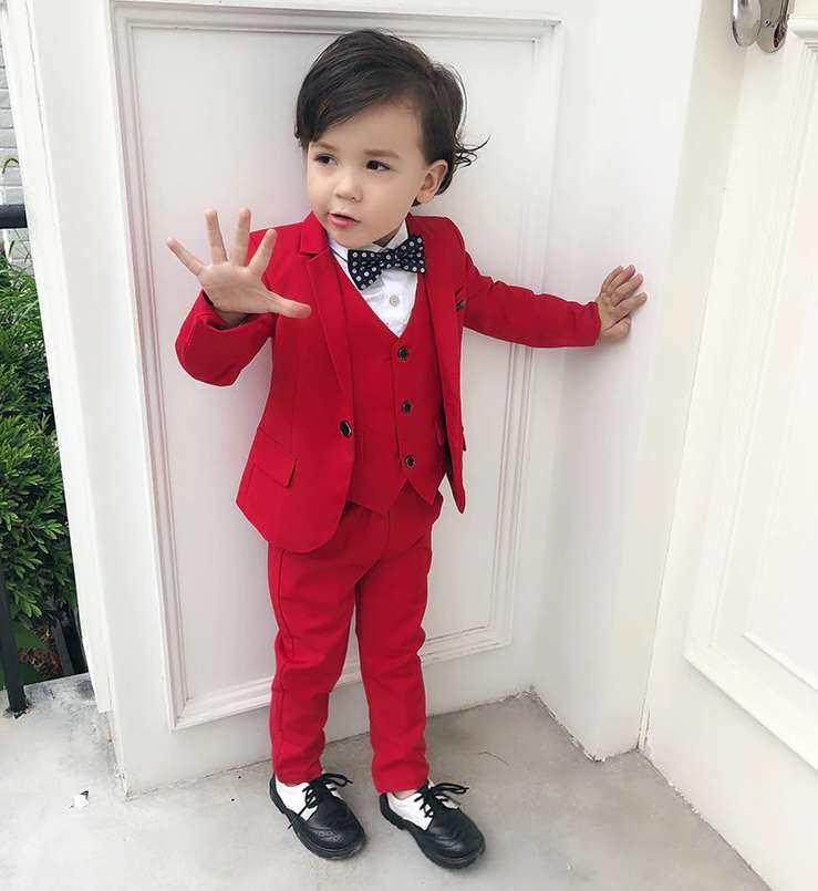 Anzug Set für Boys, chic in grau oder rot, 5-teilig wie abgebildet, ohne Schuhe