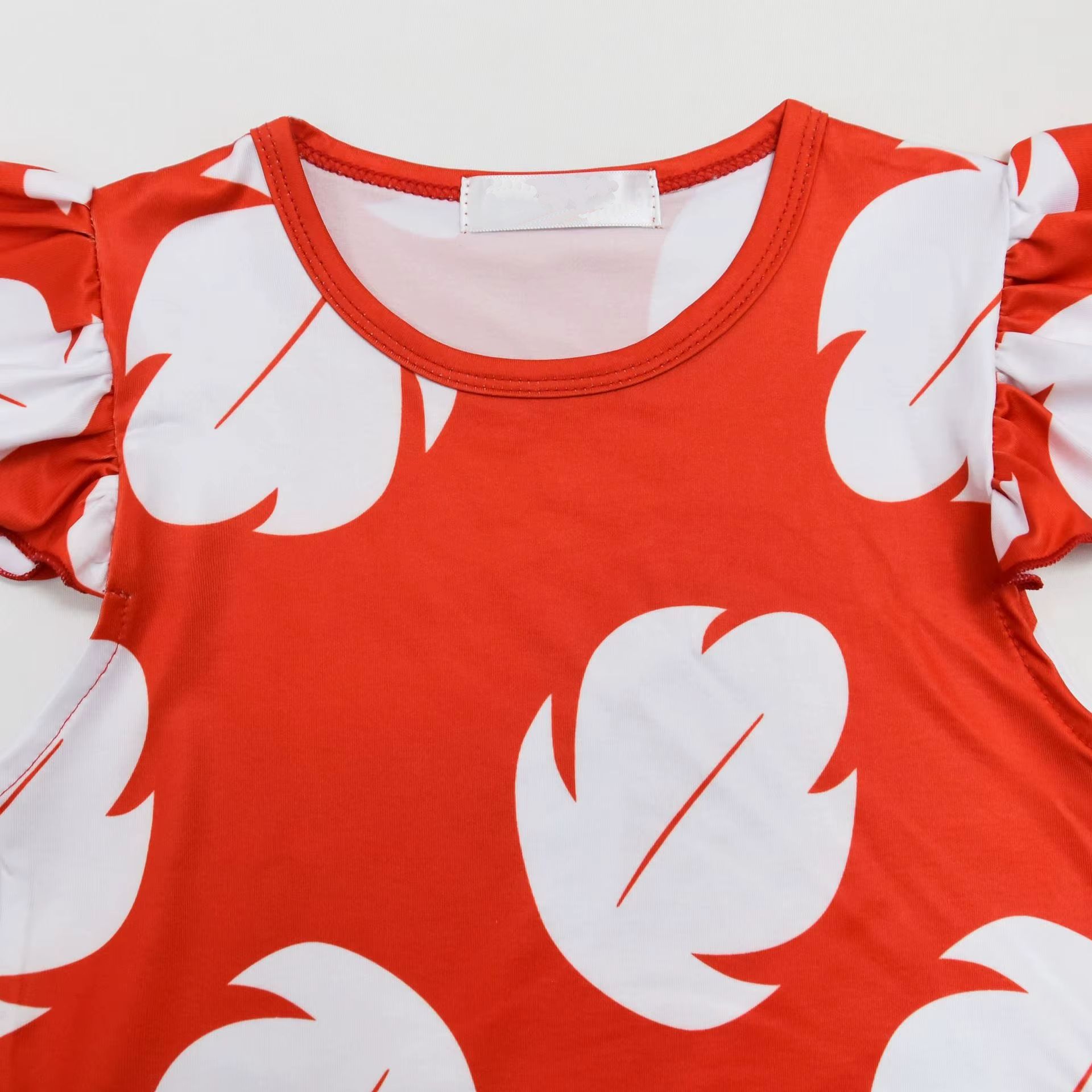 Perfekt für Lilo: Rotes Kleid mit Blattmuster und schön fallender A-Linie.