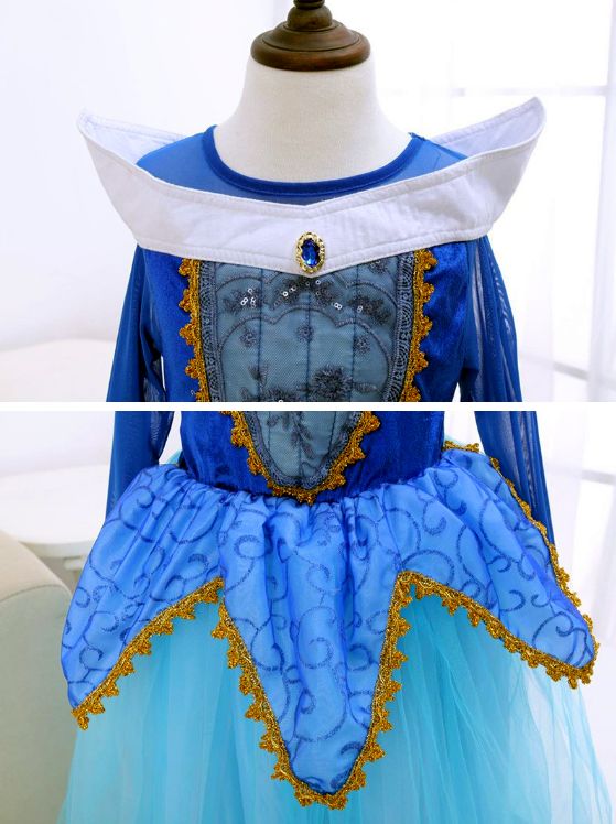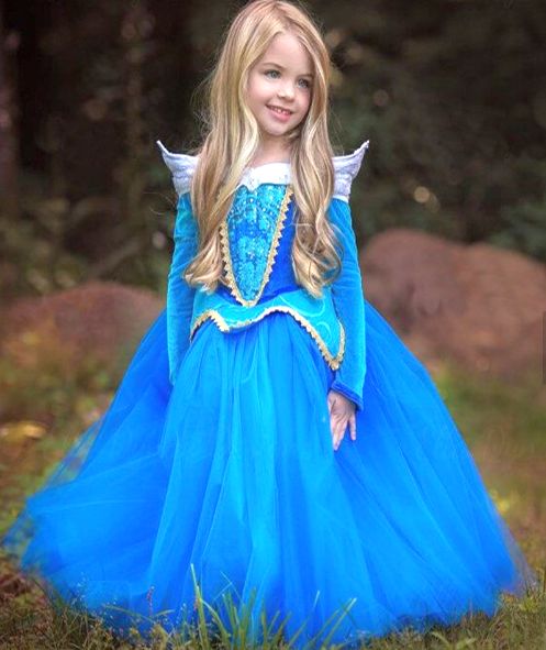 Das blaue Kleid ist weich gefüttert und schön lang, genau so, wie es sich kleine Prinzessinnen eben wünschen.