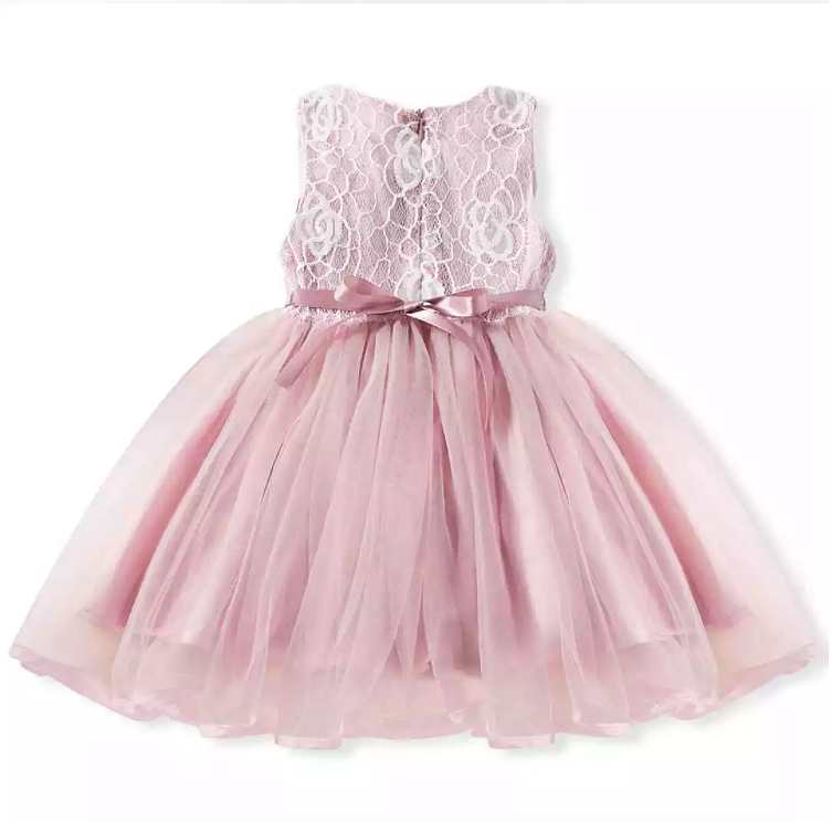 4 Farben: Süsses Mädchenkleid - mit hübscher Brosche am Taillenband