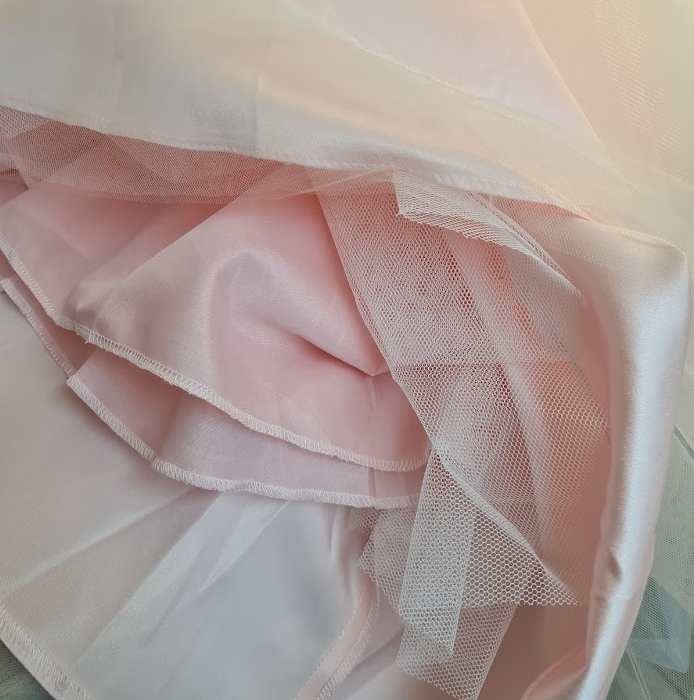 Schön lang, sehr bauschig und doch absolut angenehm zum tragen. Im Rücken mit Reissverschluss im Rockteil,