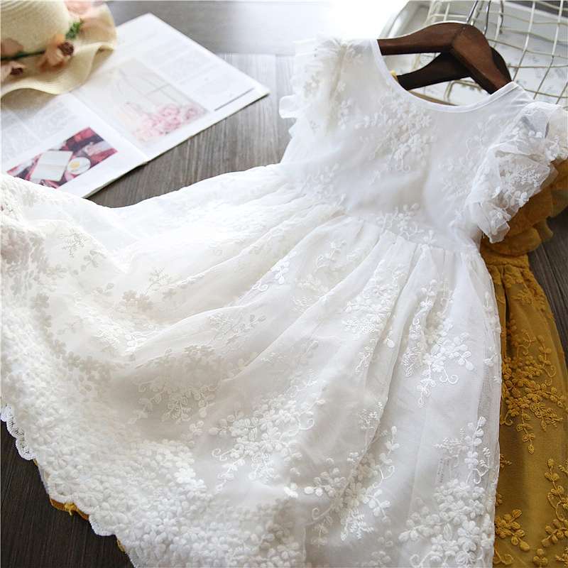Das elfenbeinfarbene Kleidchen ist aus einer leichten Viskose-Baumwoll Mischung und innen durchgehend leicht