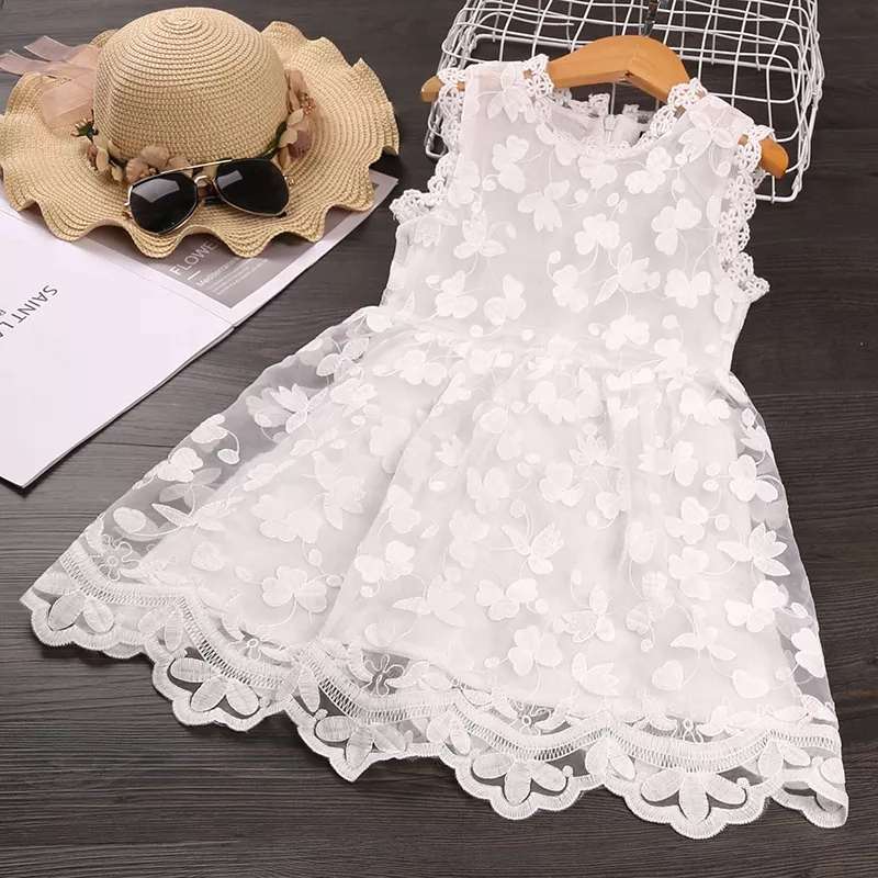 Weisses süsses Sommerkleidchen, ärmellos mit durchgehender Spitzendeko