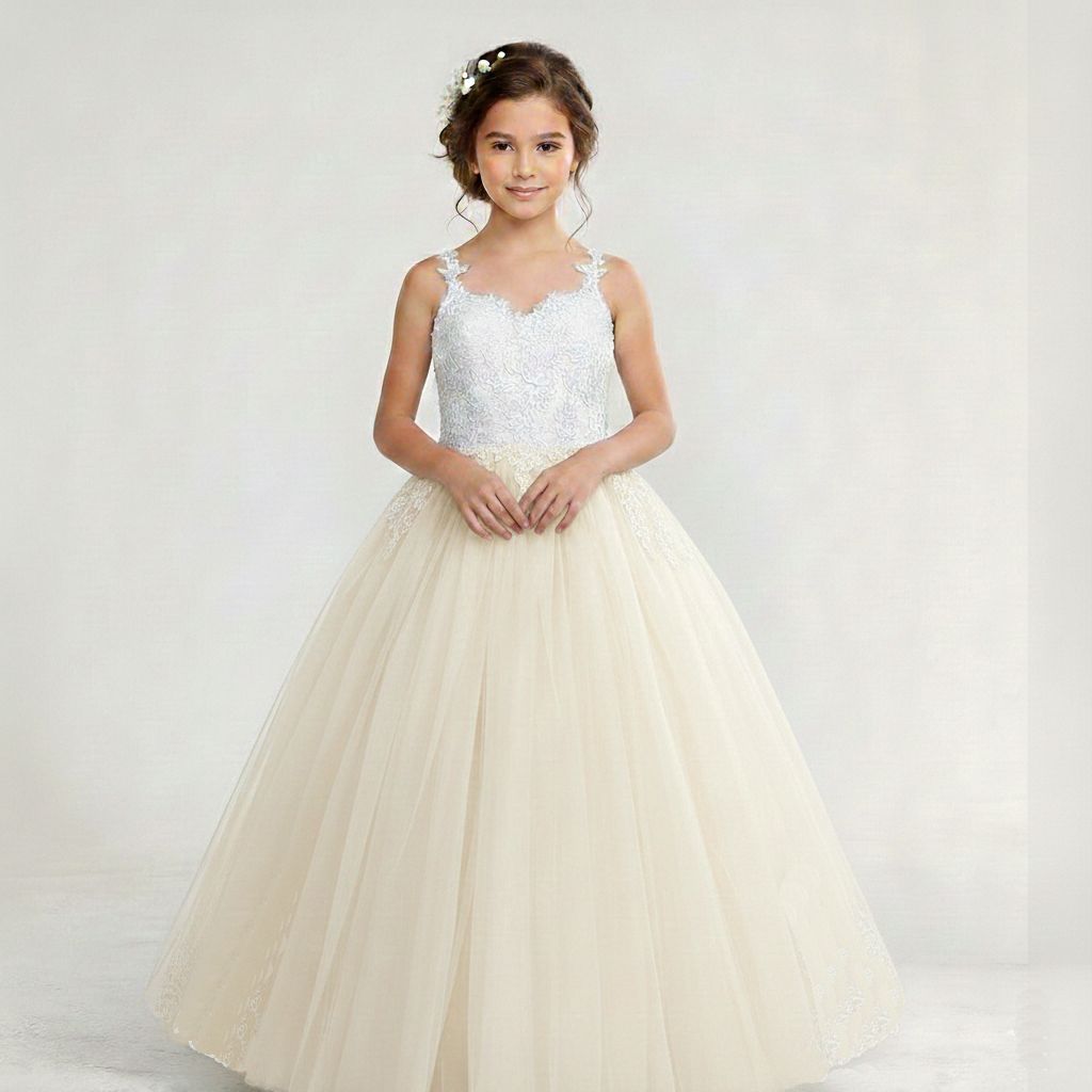Dieses schöne Kleid ist in Champagner, Crème und Hellblau erhältlich!