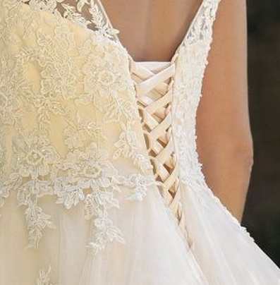 Dieses Kleid kann der Silhouette der Prinzessing gut angepasst werden: Es hat die Möglichkeit, es im Rücken zu binden.