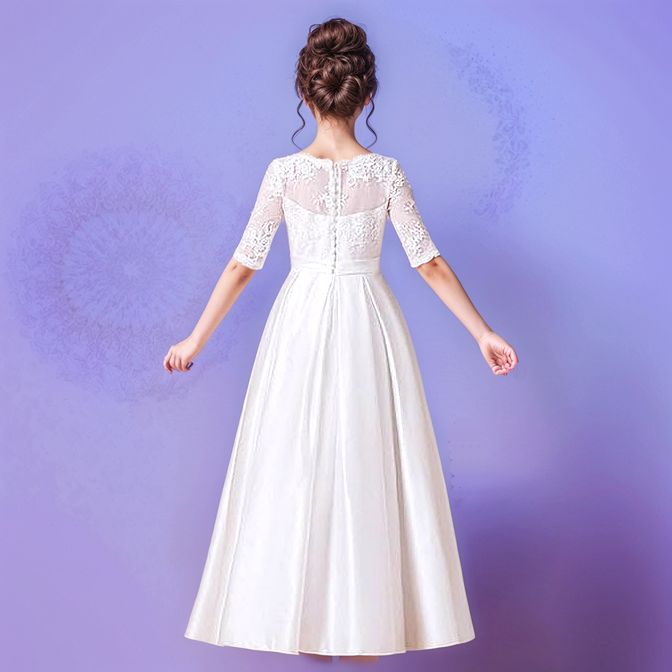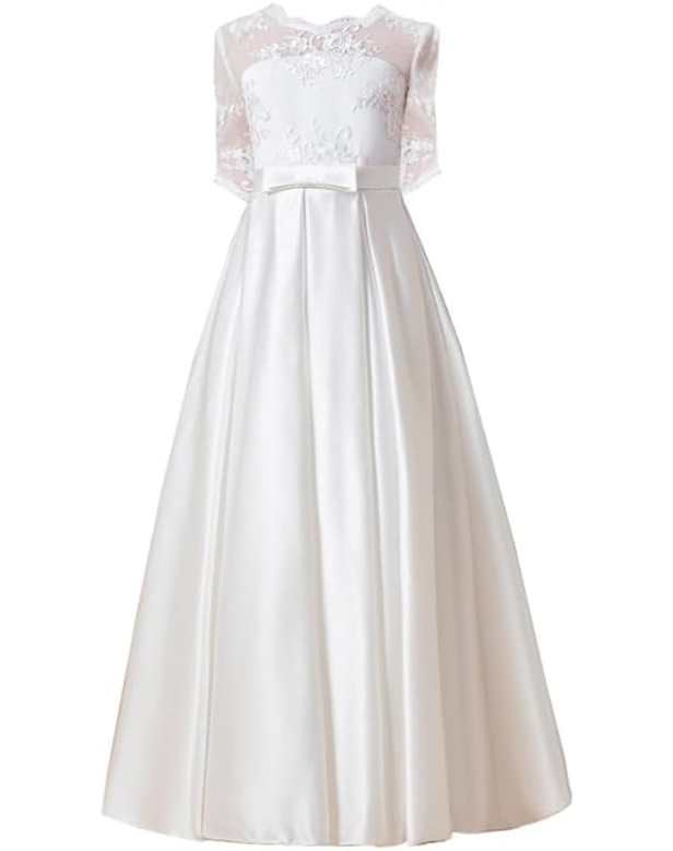 Premium Festkleid, elegant mit zarten Spitzen für Kommunion, Hochzeit etc. Satin-/Seidenlook