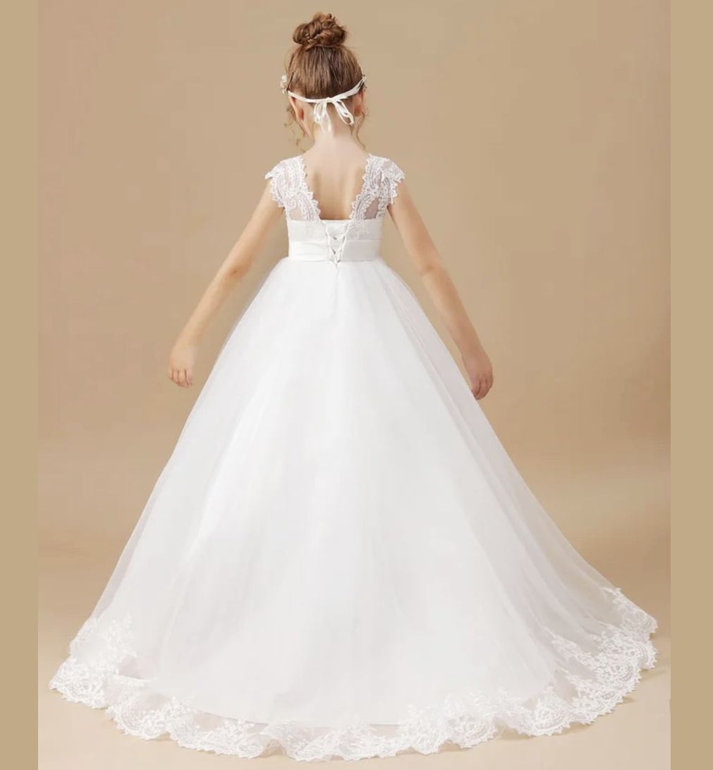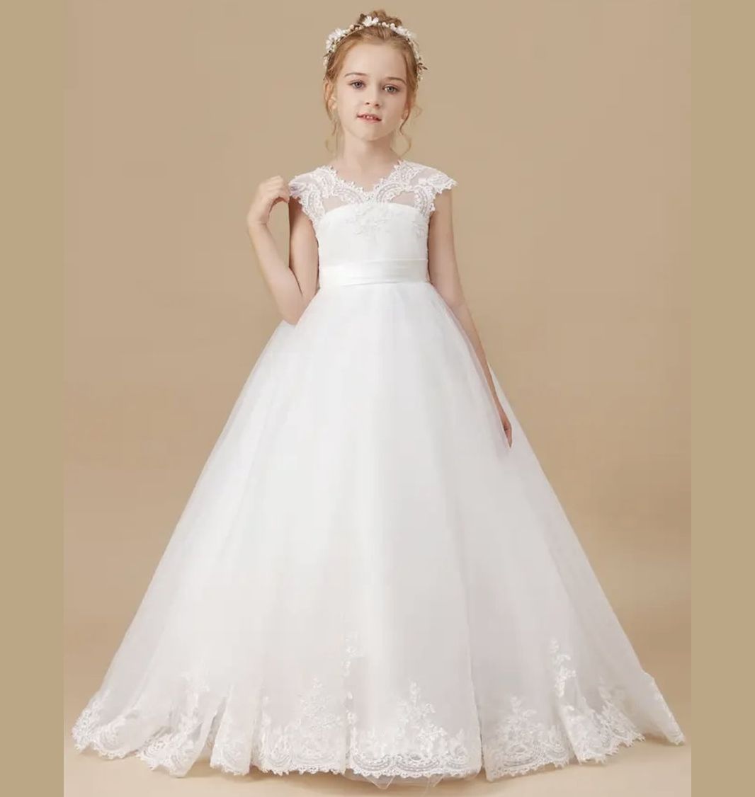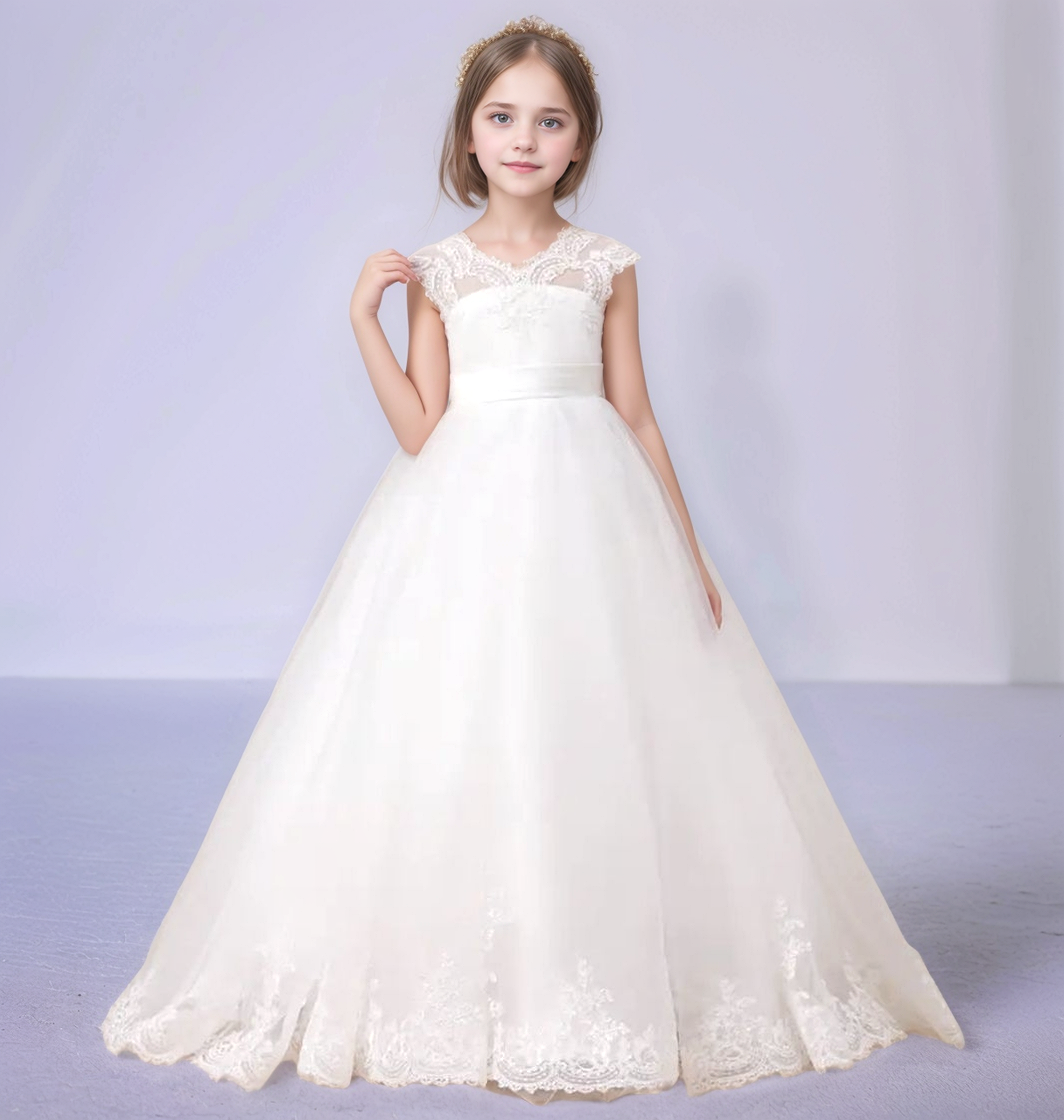 Wunderschönes Premium Kleid für Mädchen in Elfenbein.
