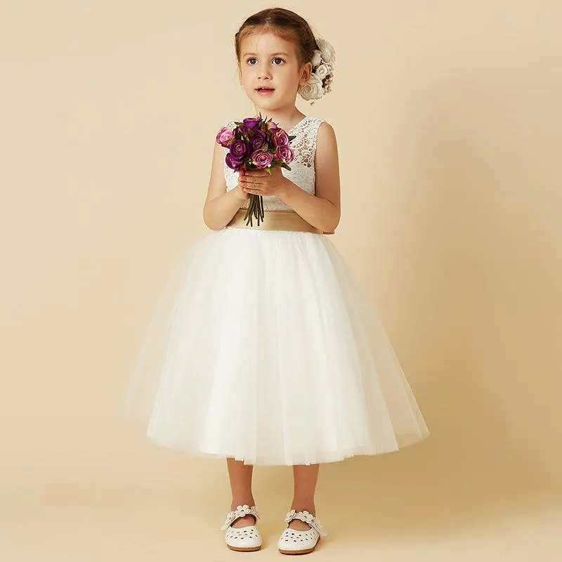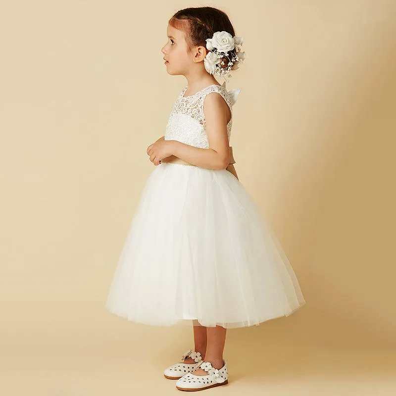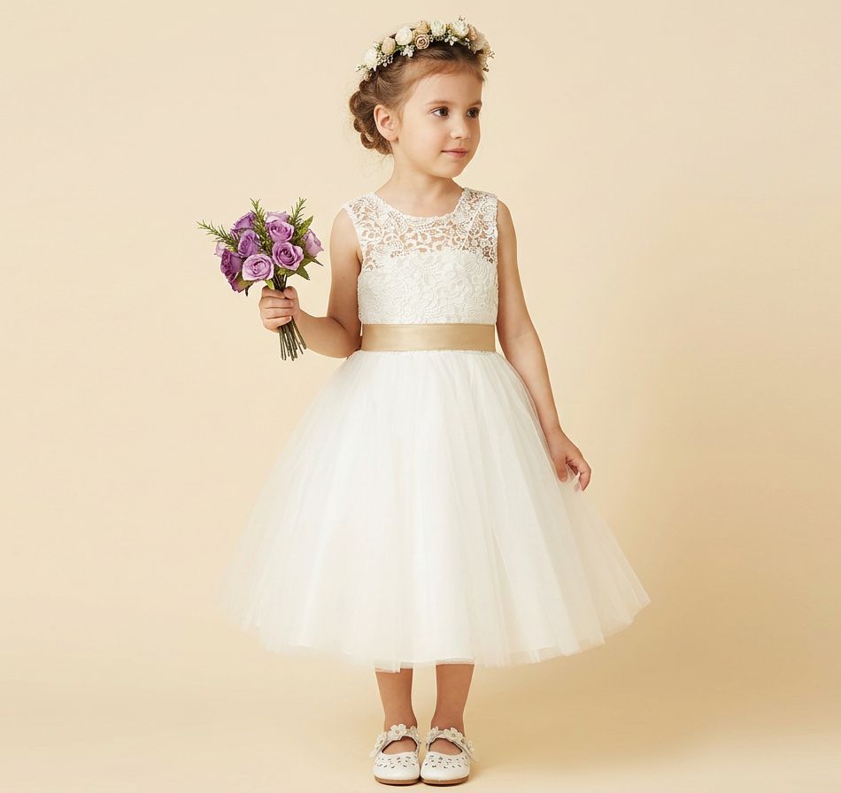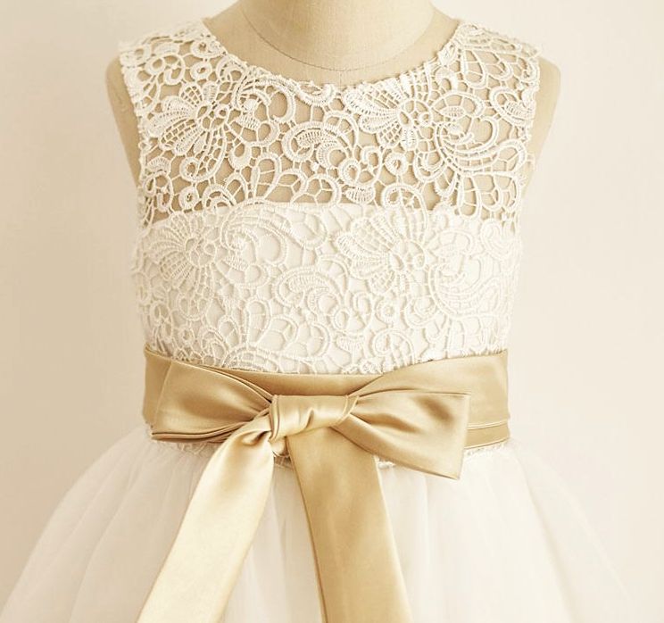 Bezauberndes halblanges Mädchenkleid, Elfenbein und Champagner