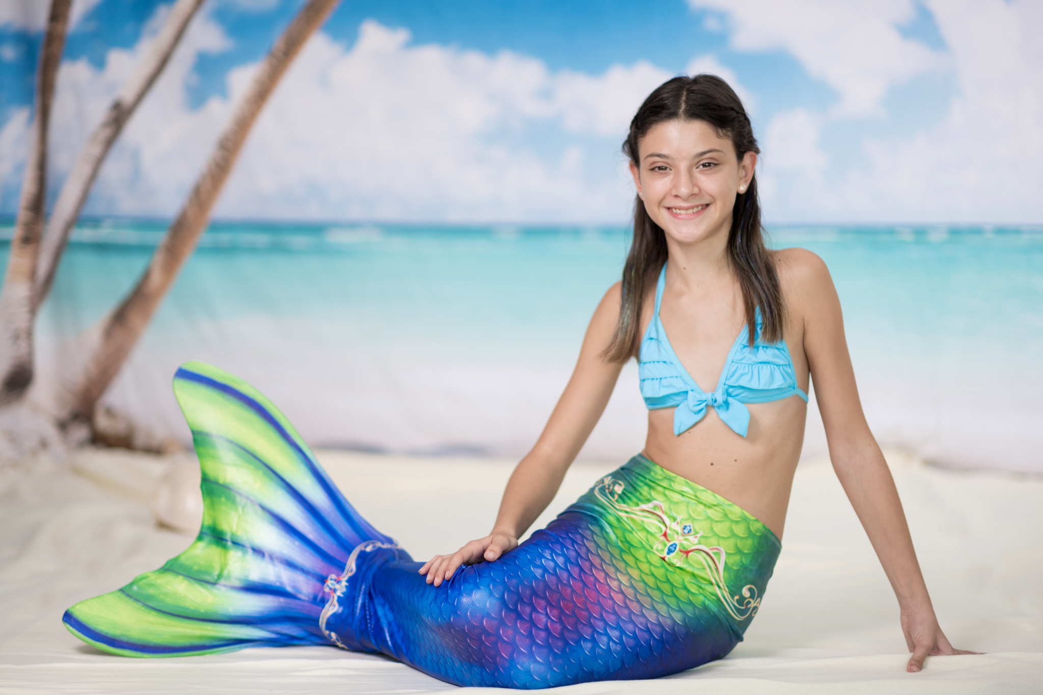 Meerjungfrauenflossen-Set für Teenies und Erwachsene, Design "Kalea", leuchtende Farben mit Deko-Print!