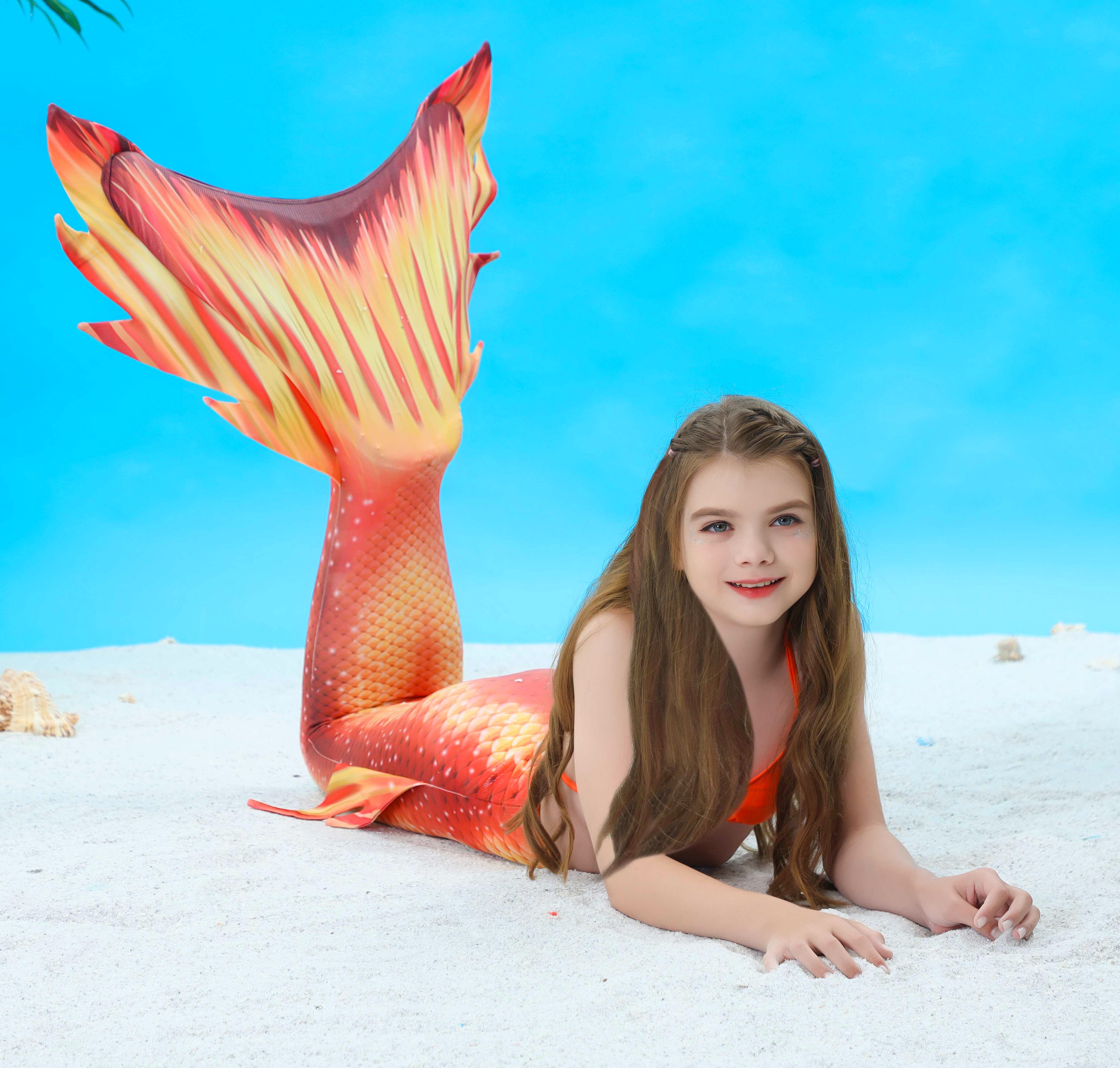 Das Set besteht aus unserer Pinkvanille-Flosse (Fussteil), dem hübschen Bezug und einem farblich passenden Bikini in goldgelb.