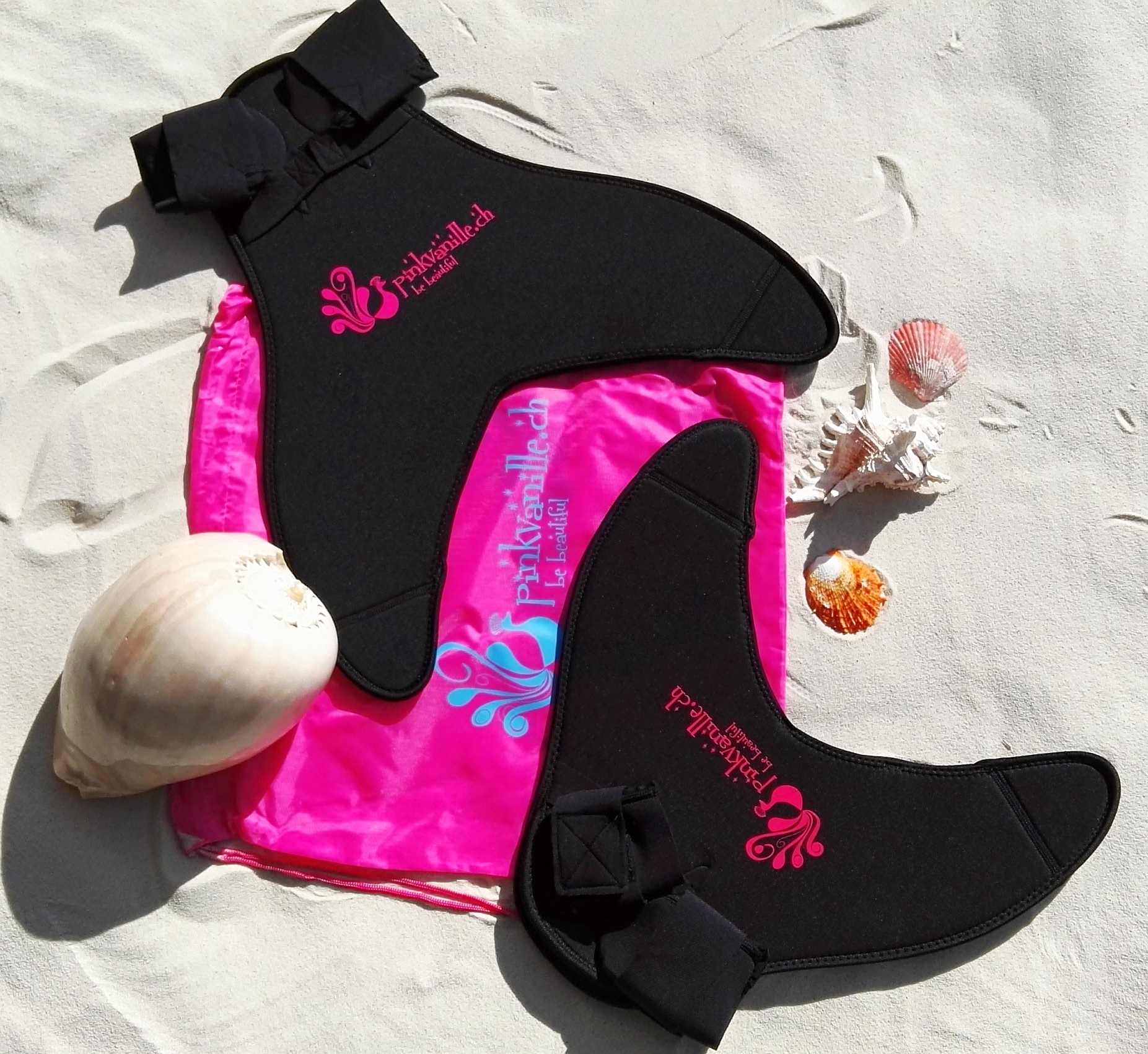 Das Set besteht aus unserer Pinkvanille-Flosse, dem hübschen Bezug plus passendem Bikini.